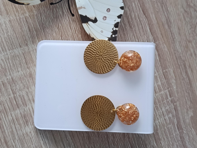 Ces boucles d’oreilles artisanales en résine renferment des éclats lumineux aux reflets dorés, traversés par le symbole du papillon, messager de transformation. Les éléments solaires dorés diffusent une vibration d’expansion, de joie et de puissance douce. Leur mouvement accompagne le corps comme une onde lumineuse.