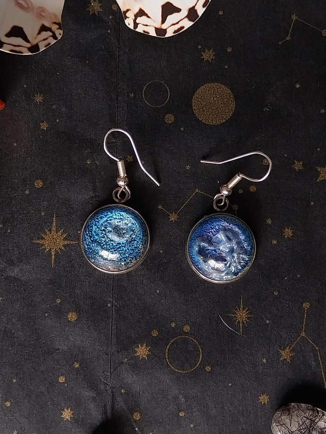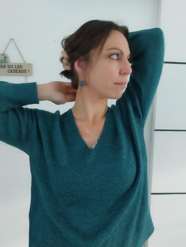 Ces cercles bleus invitent à la contemplation et au recentrage. Ils évoquent le calme après la tempête, le mouvement intérieur qui se réorganise, l’harmonie retrouvée au cœur de l’infini. Porter Volutes Célestes, c’est se relier à une énergie douce et enveloppante, un rappel que tout circule, se transforme et revient à l’équilibre.