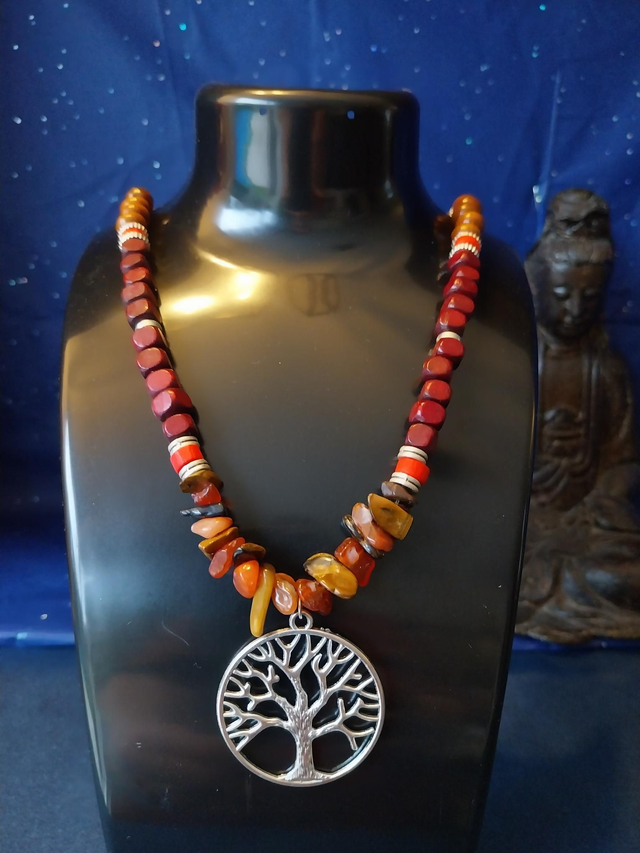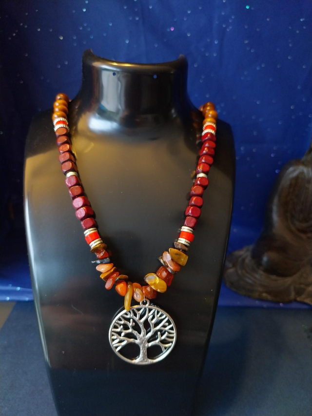 Collier énergétique Agate de feu – "Arbre des Flammes Anciennes"