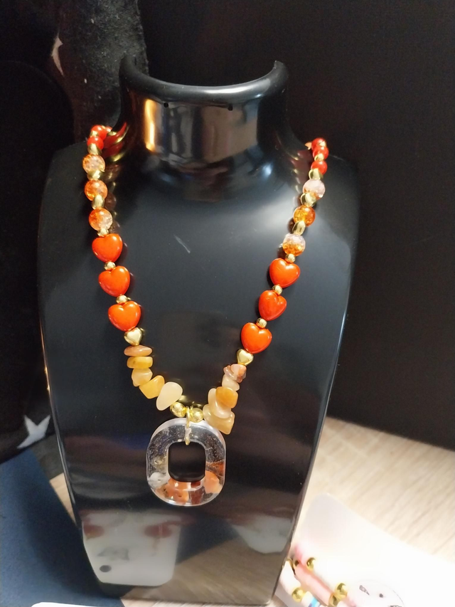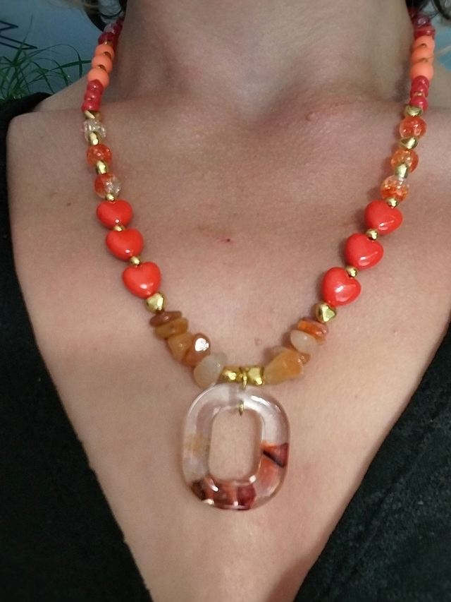 Chaque perle semble battre au rythme du cœur, tandis que le pendentif, tel un portail translucide, garde en son centre la mémoire du feu intérieur.