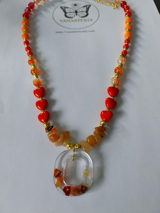 Collier énergétique pierres naturelles – "Cœur de Feu Sacré"