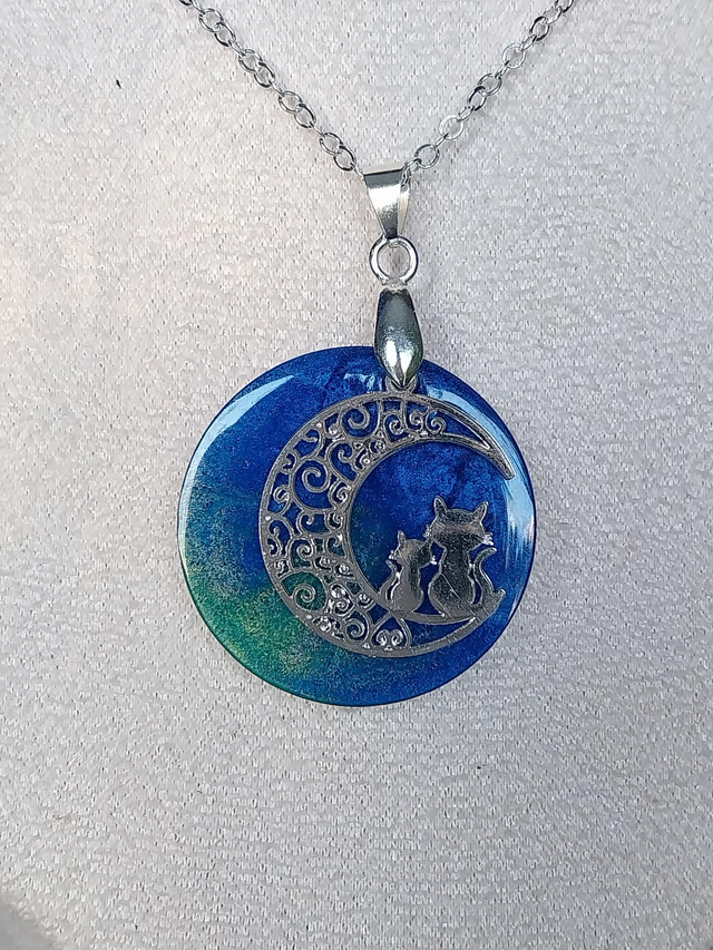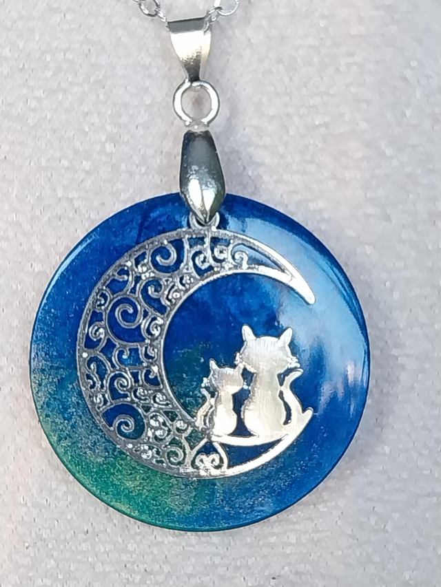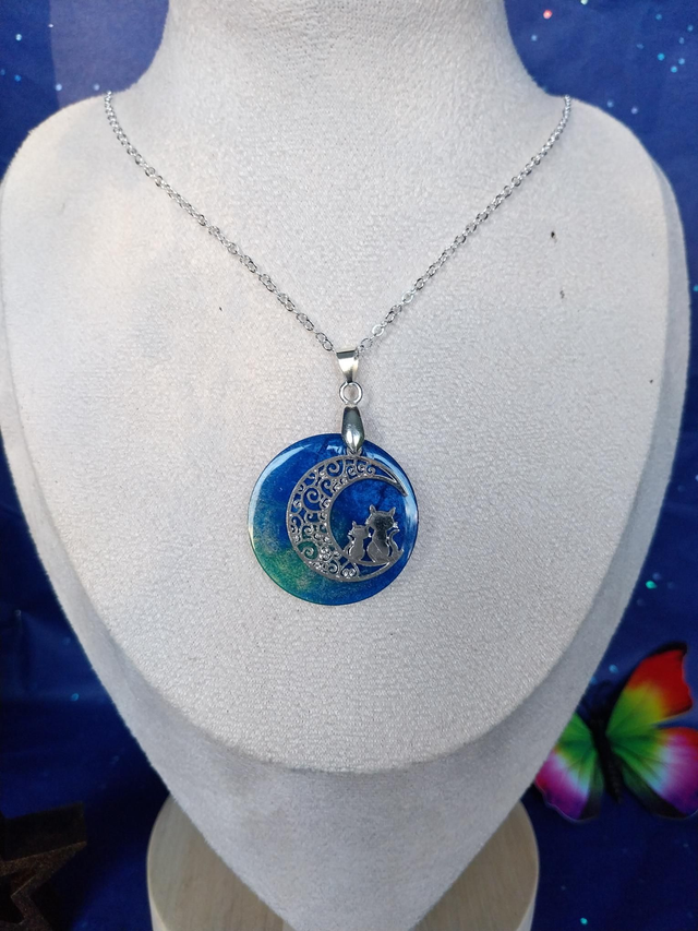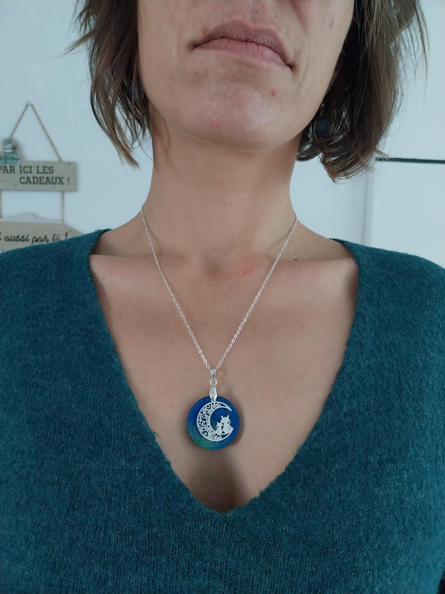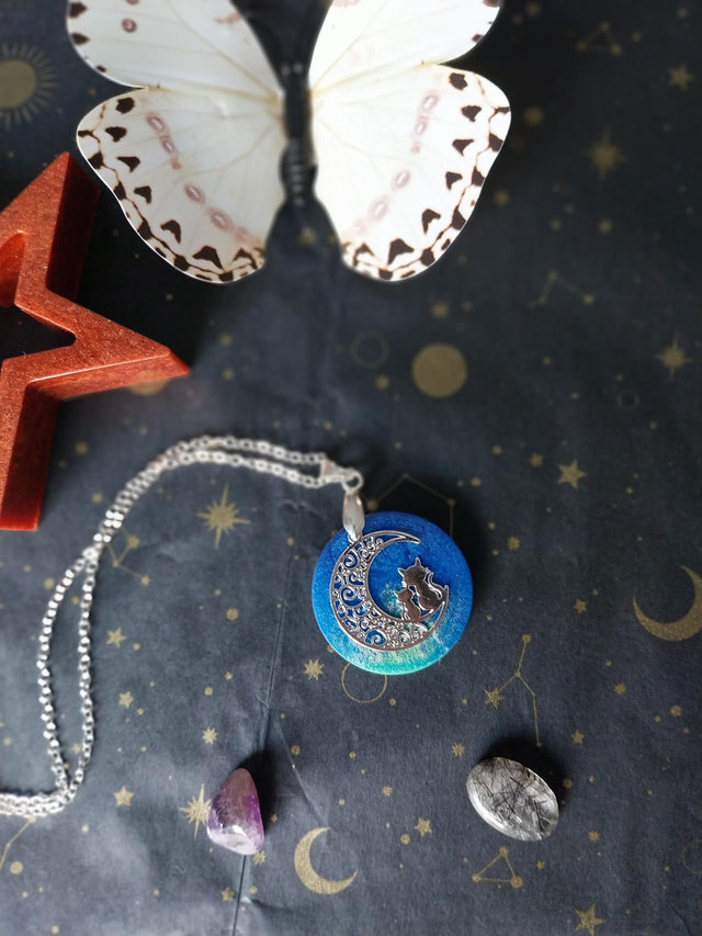 Leur lune ciselée capte les reflets du ciel nocturne, tandis que l’astre bleu, né des eaux stellaires, symbolise l’intuition, la douceur et la guidance silencieuse.