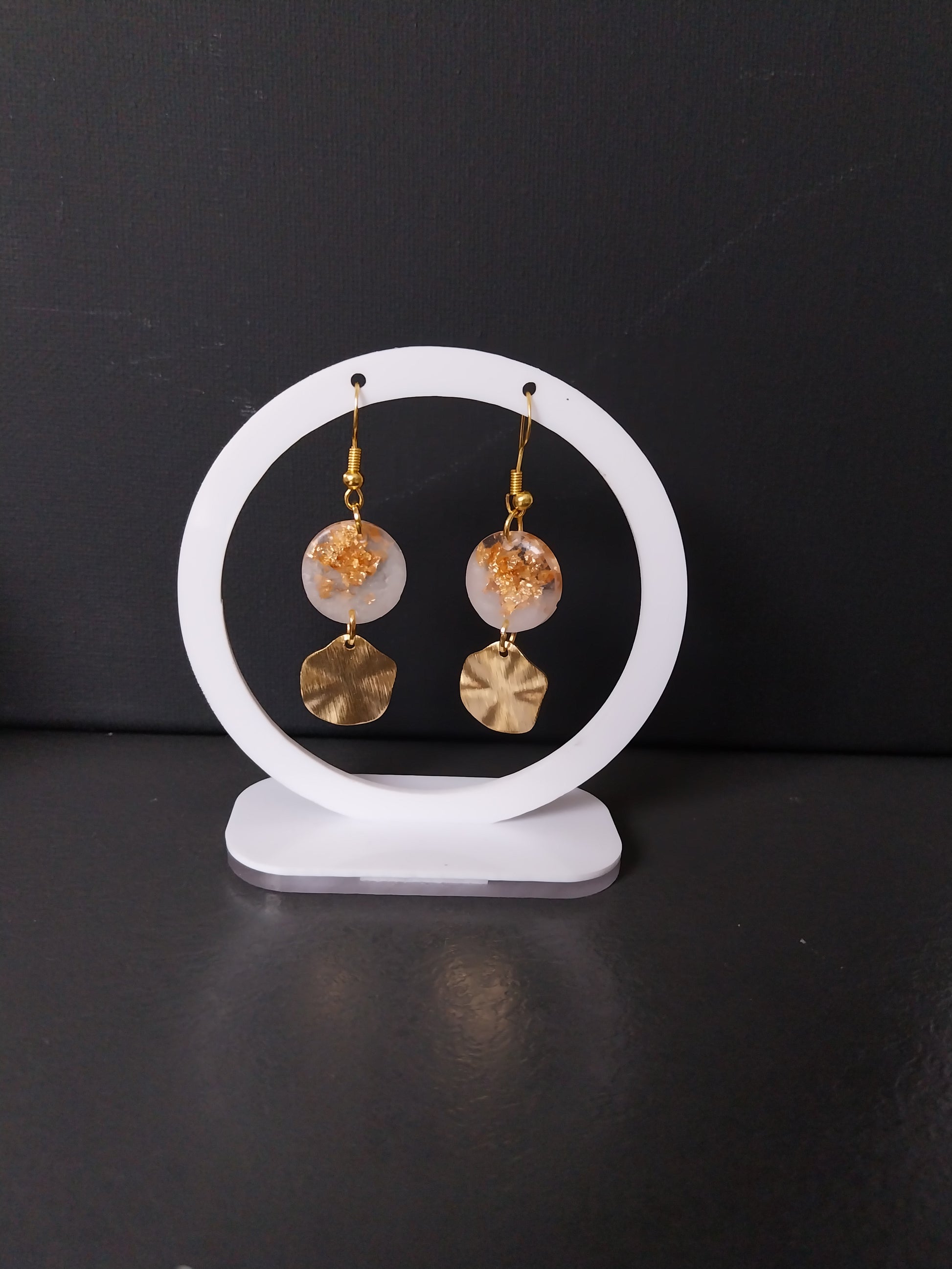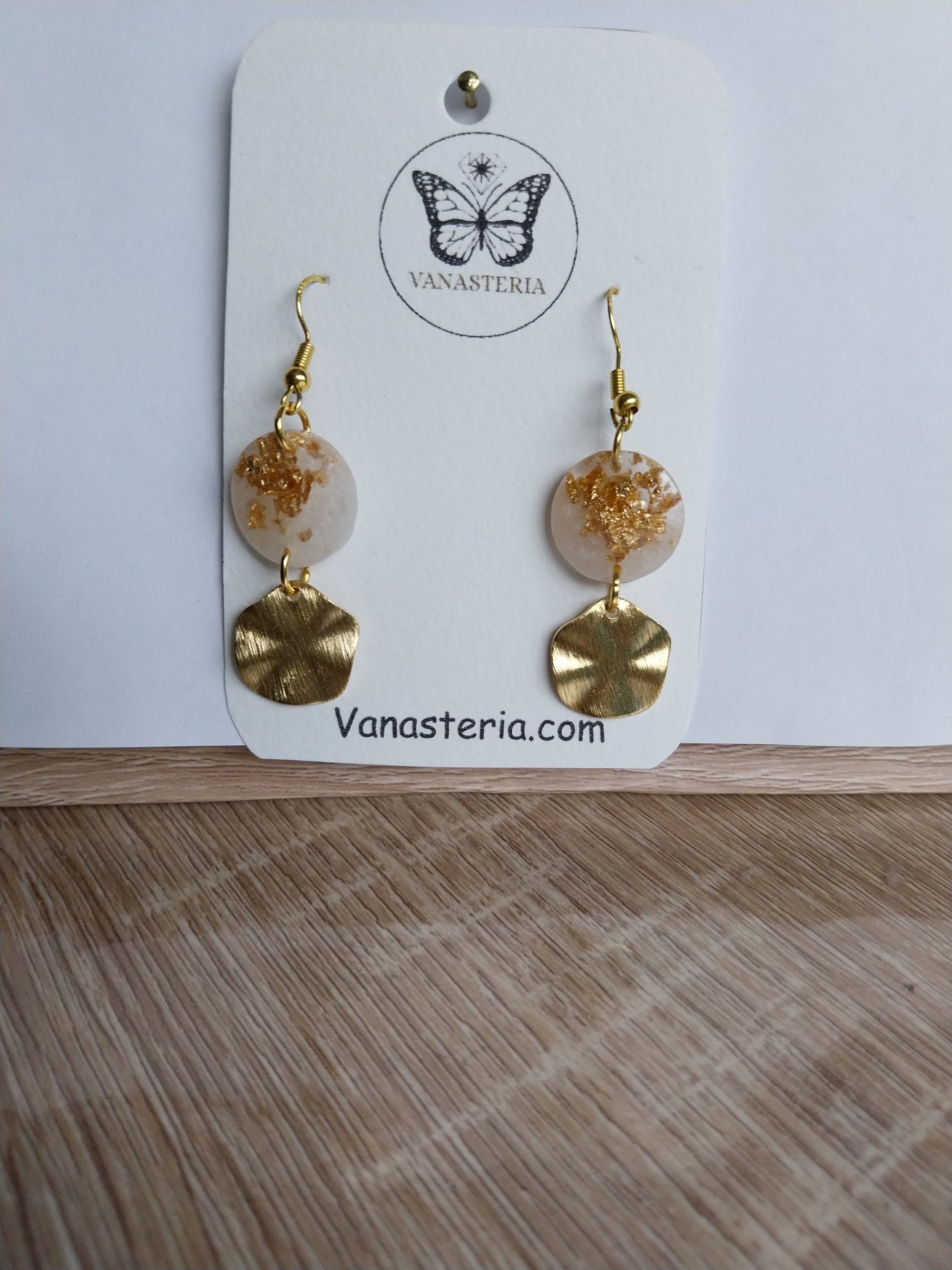 Les Ailes d’Aube – Boucles d’oreilles artisanales dorées en résine et laiton, bijou poétique et lumineux
