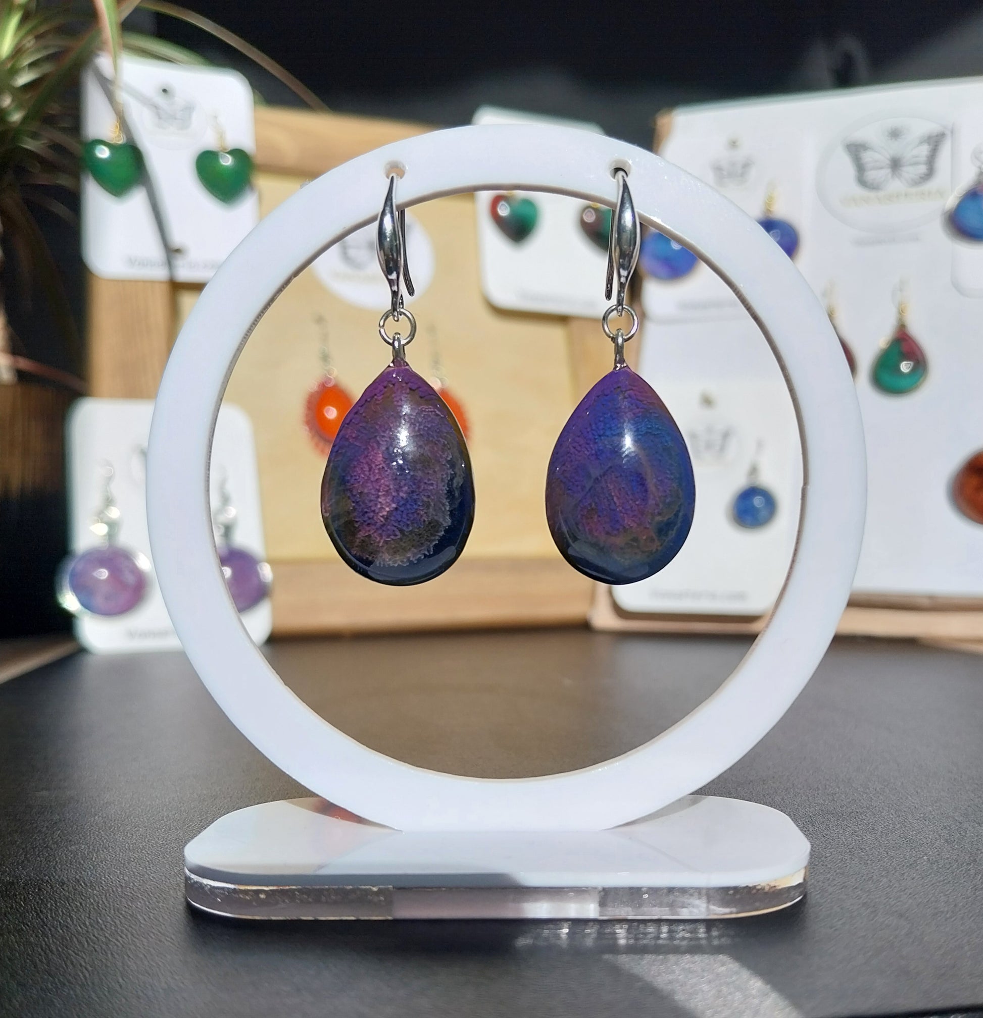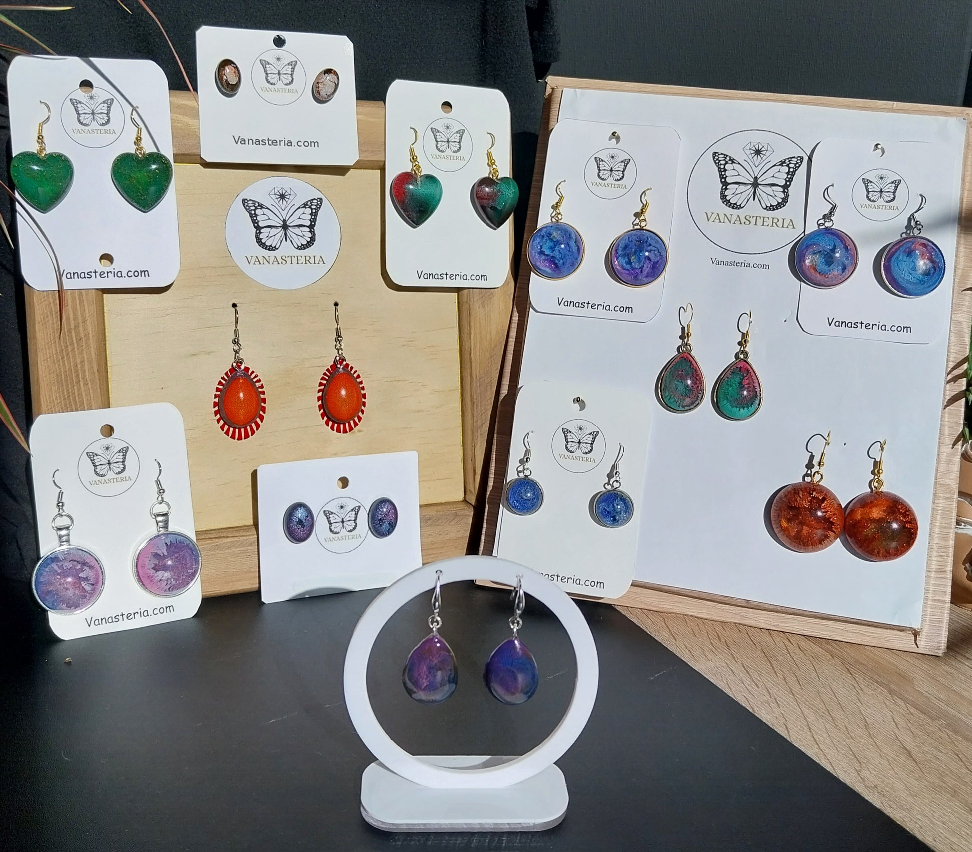 Chaque bijou est peint à la main, laissant naître des formes uniques, comme des paysages intérieurs ou des fragments d’univers.